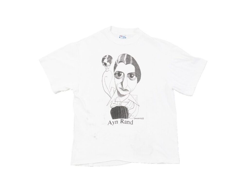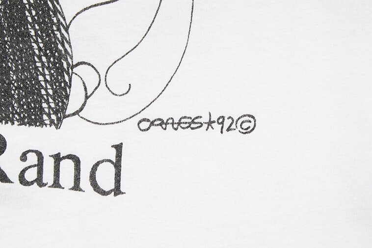 小説「水源」などで知られる作家「アイン・ランド」。プリントの中のコピーライトに年号も入る。ボディは〈ヘインズ〉の[ビーフィー]を使用。1万9800円(スタイル202 電話番号非掲載)