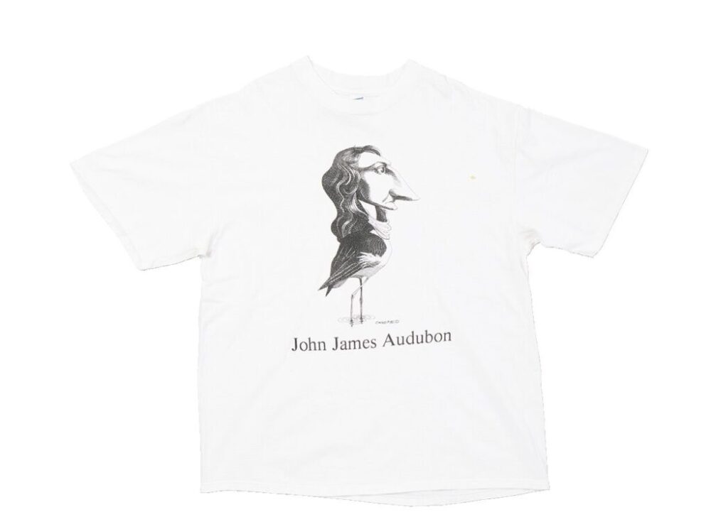 鳥類を描く画家の「ジョン・ジェームズ・オーデュボン」だけに鼻を口ばしのように、顔の下は鳥で表現するイラストがユニーク。2万1780円(アジテーション フリー中目黒TEL03-6886-1411)