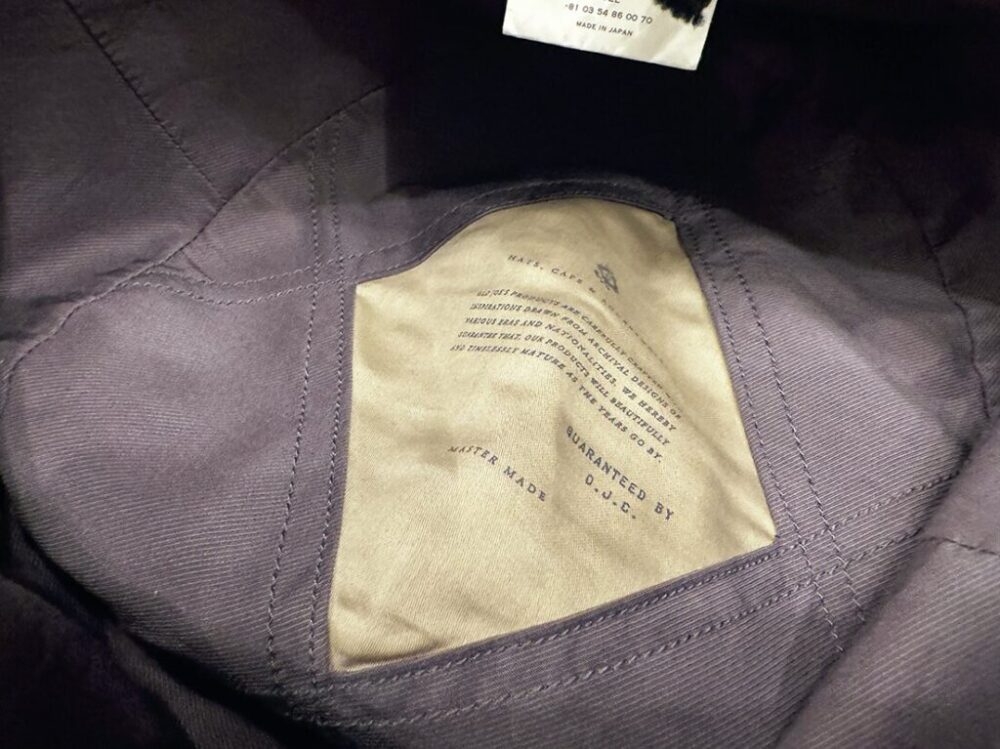 複雑に縫製されているライニングの仕様がベレーファンには堪らない。レーヨン、綿、キュプラ、麻と4種の素材を組み合わせている。