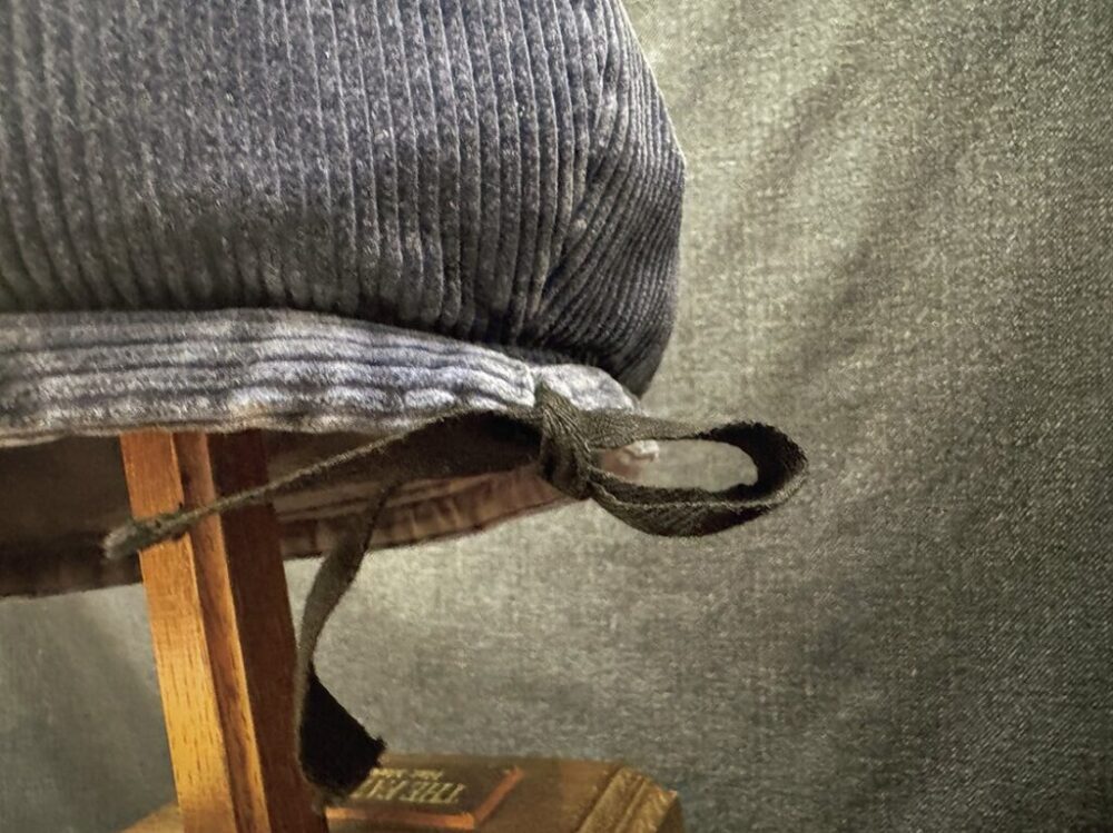 サイズ調整のためのヒモがついているのもミリタリーベレーの特徴。長く垂らしてもいいだろう。私は短くカットして被る派。