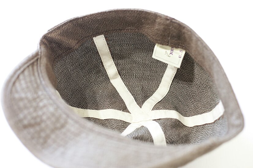 最初に断っておくと、実はこのキャップは、159ページに掲載する稲妻特派員用の謝礼として購入したんだけど、あまりにも気に入って自分用にも買ったもの。個人的には定番のブルーデニムだったら買わなかったんだけど、天邪鬼な性格からかブラウンデニムっていうのに強烈に惹かれた。聞けば、土埃などの汚れを目立たなくする効果を狙ったブラウンデニムはブルーデニム以前に作られたものらしく、ヴィンテージは現存数が極めて少ないためその存在すら知られていない希少なものだと言う。経糸に茶のナチュラルインディゴ、緯糸に生成りと黒の杢糸の淡いブラウンが、お気に入りだ。