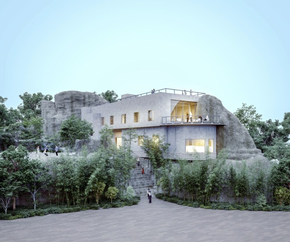 1500年もの間、人々の暮らしや祈りの空間を支えてきた大谷の岩山。その岩肌に抱きつくように建てられたのが、昭和期に多くの人に愛された複合施設、旧「山本園大谷グランドセンター」である。この歴史を継承し、岩山と人々の関係性を象徴する場所として「大谷グランド・センター」が新たな歴史を刻み始める。