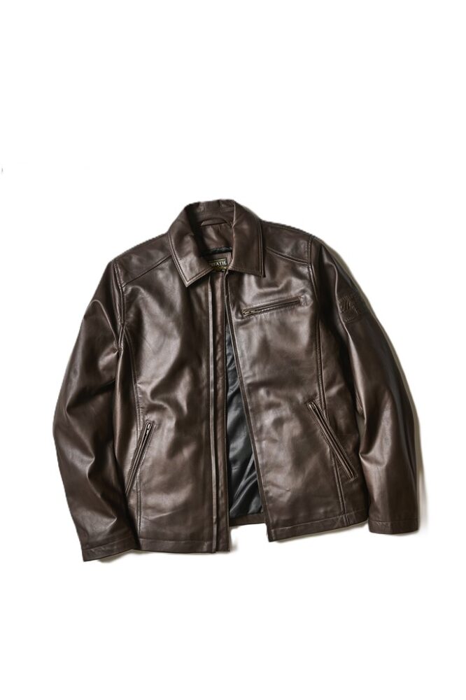 柔らかいシープスキンを使ったスタンドカラーのライダースJKT。アメカジからハイファッションまで何でも合わせやすい万能な1着。今年ブラウンが新登場! 各5万9990円