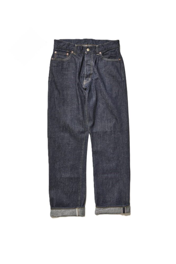 1960年代当時、ファッション性を求めて誕生したテーパードシルエットのモデルを踏襲。荒々しい生地はそのままにジッパーフライを装備している。2万4990円