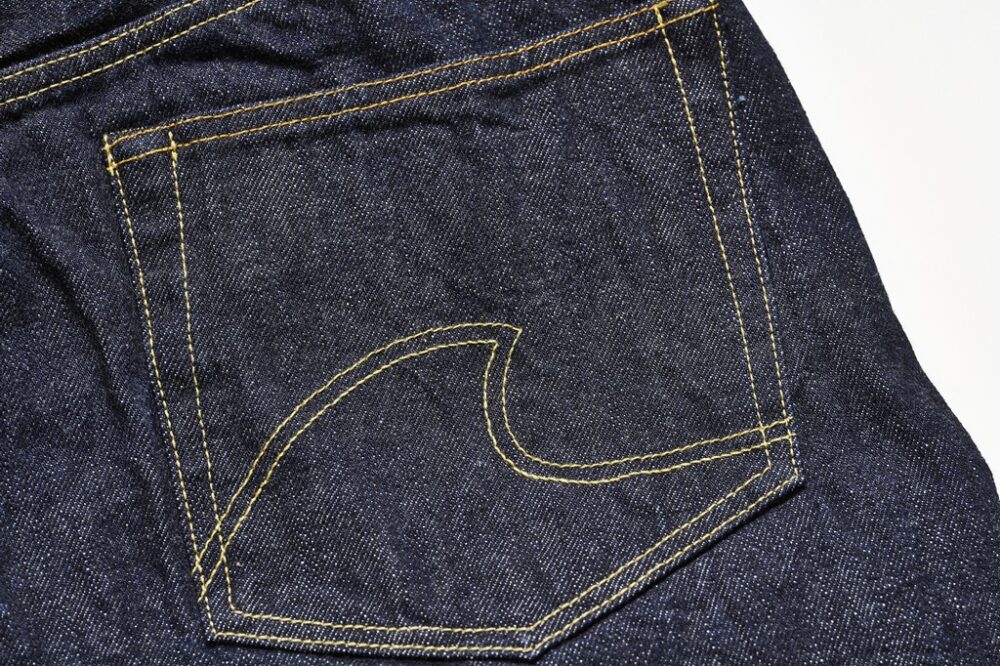 バックポケットに施された飾りステッチはブランドの象徴。こちらもヴィンテージ感を意識しながら「波」をテーマに、絶妙なステッチワークで表現している。