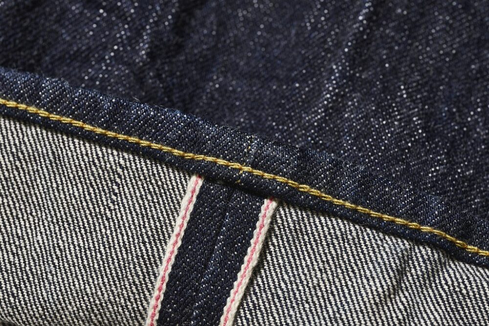 15.5oz.の児島産の生機のセルビッチデニムを使用。洗濯と乾燥によって生地がグッと縮まり、アウトシームに抜群のアタリが出てくるのが楽しみだ!