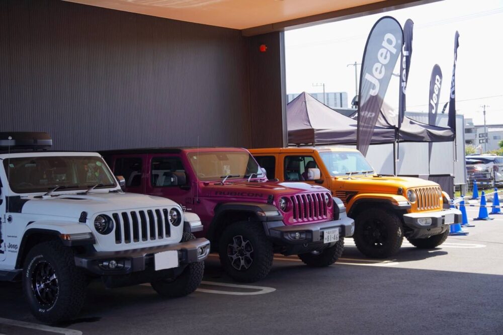 当日はラングラーの試乗を楽しみにしていた一般参加者に加え、すでにラングラーを所有しているオーナーたちも数多く参加。会場には様々なカラーのラングラーが並んでいた。
