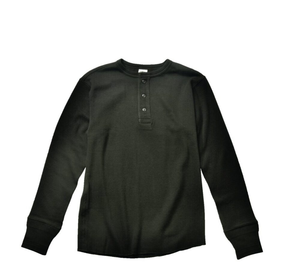 蜂の巣柄に編み込まれたサーマル素材を使用し、肌触りが非常にいいのが特徴。袖口はリブの編み立て仕様に。クルーネック、Uネック、ヘンリーネックが選べ、カラーはリブT同様の3色をラインナップ。