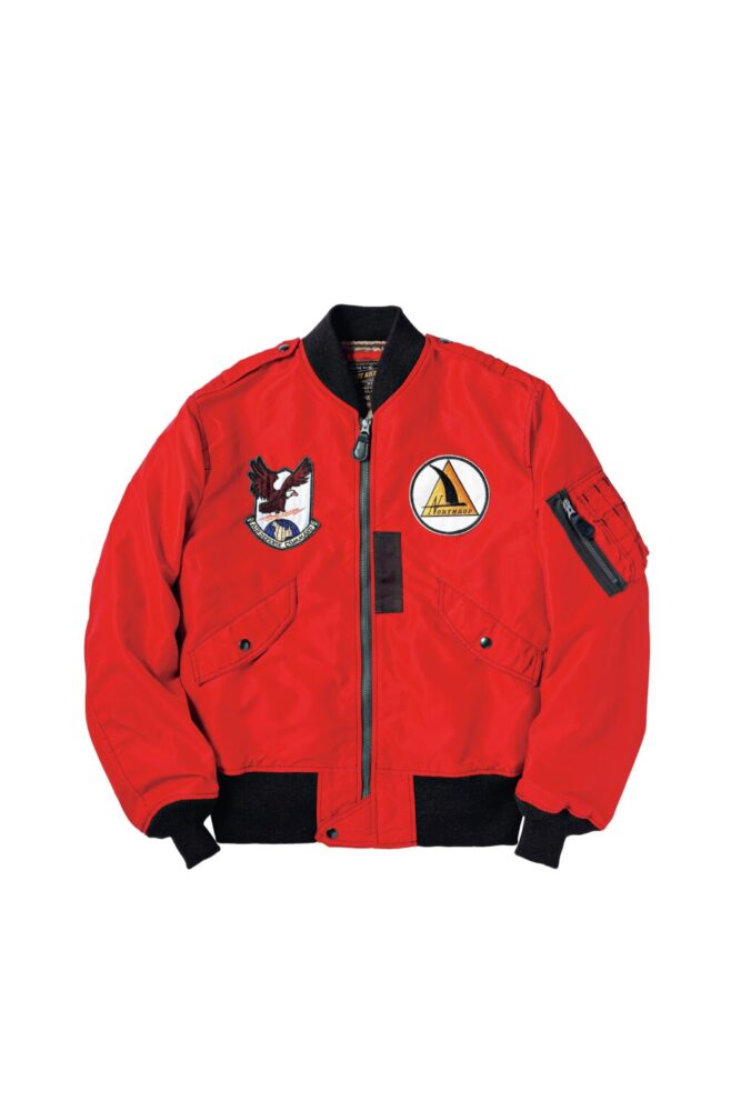 王道のMA-1系フライトジャケットをビビッドな“赤”で刷新する。