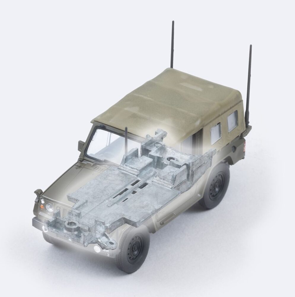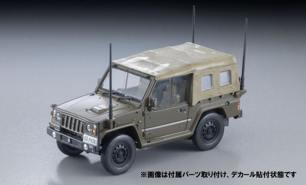 自衛隊で2000年代に調達された通称“中期型”を再現。前輪はステアリングが可動する。水転写デカールは複数の部隊・車両番号表示を収録。