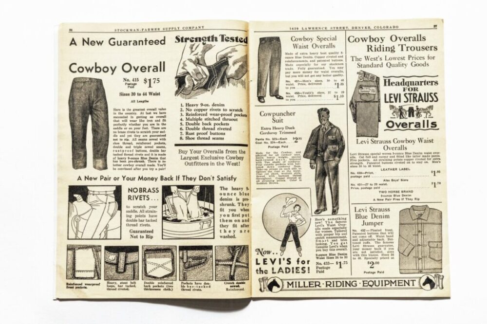 1934年に発行されたデンバーにあったストックマンファーマーサプライのカタログ。リーバイスの女性向けのジーンズが新発売されたと紹介。