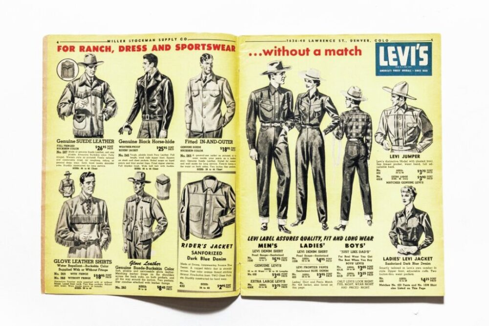 デンバーの名店であるミラーストックマンの1950年のカタログ。ウエスタンラインのデニムシャツから王道の506XXまで掲載。ボーイズやレディースも紹介されている。