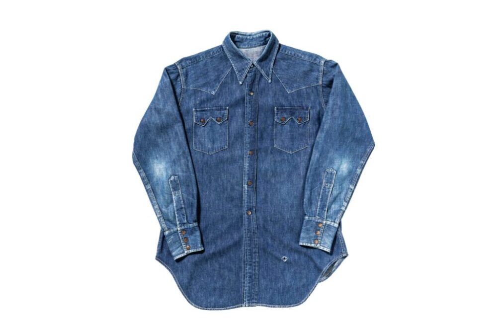 タグが取れているがリーバイス刻印が入ったスナップボタンで判別。なんとも雰囲気のあるデニムウエスタンシャツ。寺本氏は、銅タイプのスナップボタンを用いたシャツをこぞって収集。