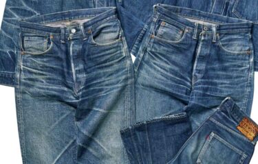 背面には鉄製のバックルバックが付く。生地はタテ糸に7.5番手×ヨコ糸に16番手の糸を使用したセルビッチライトオンスデニムを採用。