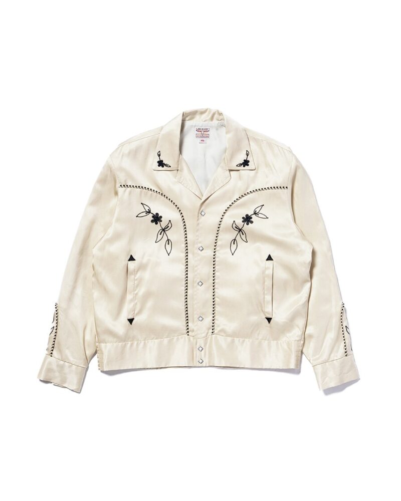 袖元にまであしらわれた刺繍やウエスタンらしいスクエアボタンが、エレガントな雰囲気を醸す。