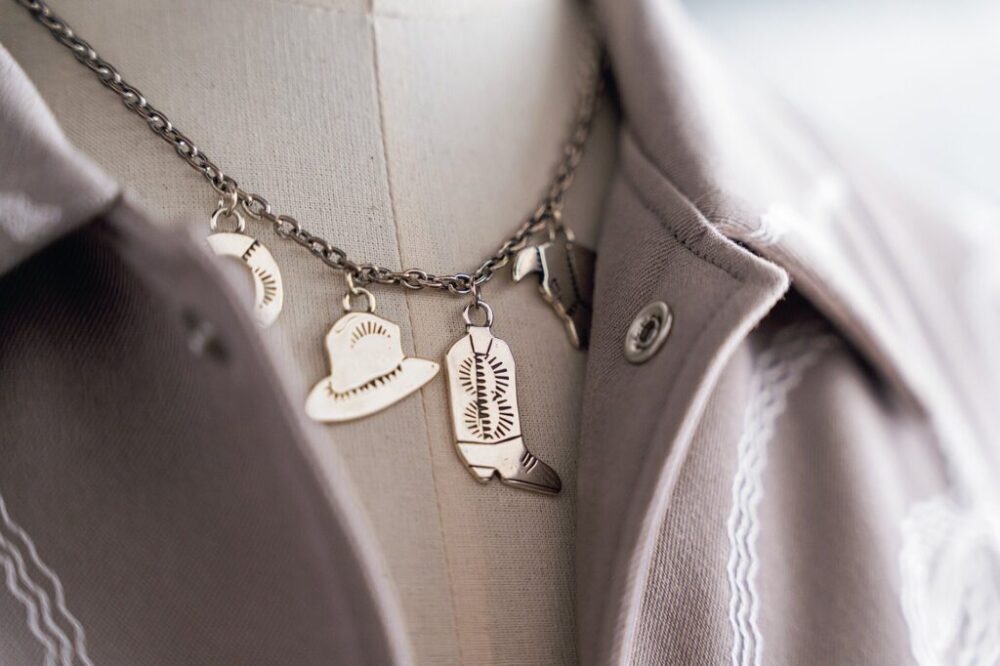 日本のシルバー職人が1点ずつハンドメイドで作るオリジナルのシルバージュエリー。カウボーイのアイコニックなモチーフをうまく落とし込んでいる。長さ調整可。5万7200円