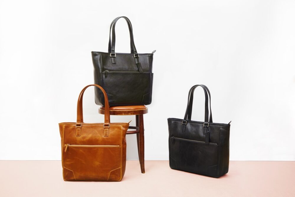 便利な収納ポケットが多く使い勝手が良い。「オイルレザースクエアトートバッグ」 全4色/ ¥23,800。