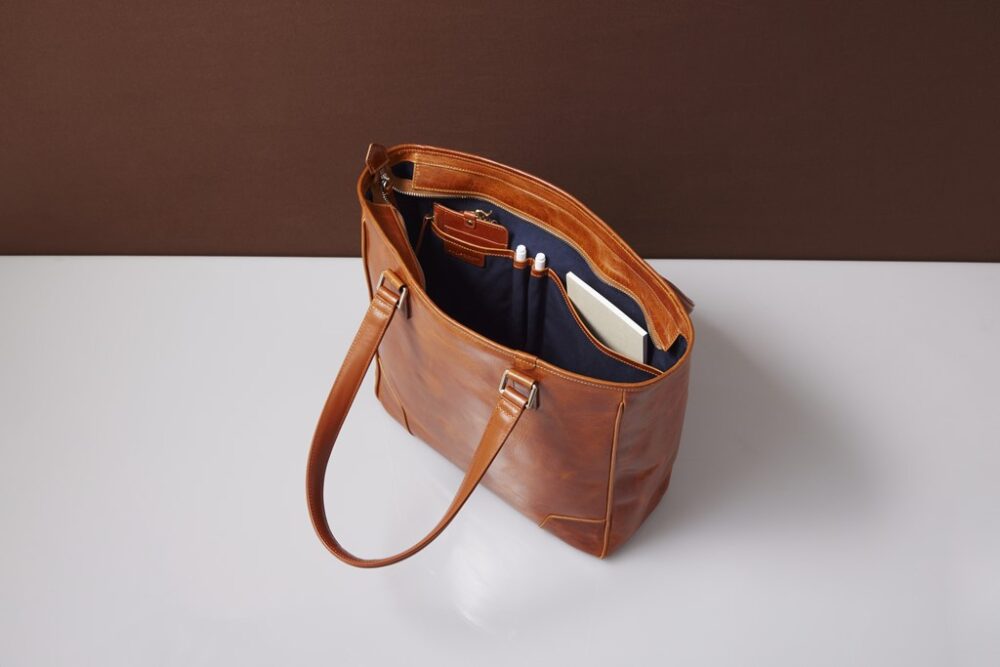 豊かな表情のオイルレザーの素材感を備えながら、 機能性・デザイン性にも優れたトートバッグ。 本革ならではの品のあるつや感があり、オンオフ問わずユニセックスで活躍しそう。A4対応やファスナー付きなど実用面も魅力だ。