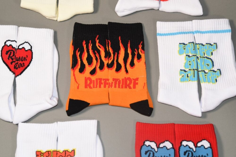 グラフィティやフレイムといった大胆なグラフィックを落とし込み、ソックスからウェアまで独自の世界観を表現する「Ruffn’Turf」。新作のフレイムソックスは存在感抜群。タウンからスポーツシーンまで、足元 から主張できる1足だ。