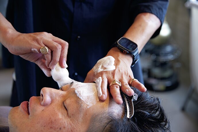 中村さんが手掛けるカッティングケープは、バーバーの世界観をぐっと深め、彩る。圧倒的な存在感を放つオリジナルケープの名作たちをココに公開。※購入は招待制です。