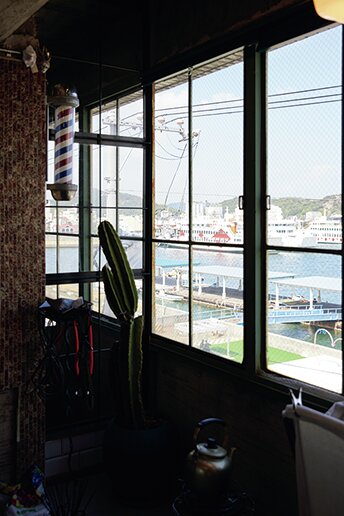 JR宇野駅から徒歩約10分のヴィンテージ感ある雑居ビル内に店はある。
