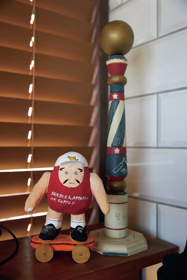 バーバー向けの商品卸販売を手掛ける『ブルーベルベット』とのコラボ品。はねるようなポップなプリントが印象的だ。