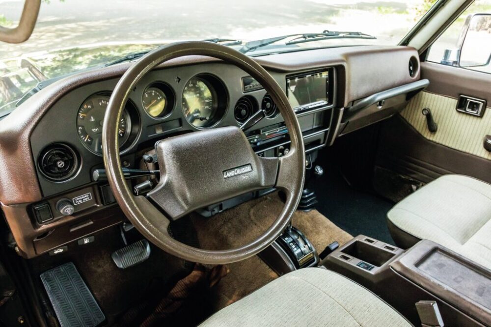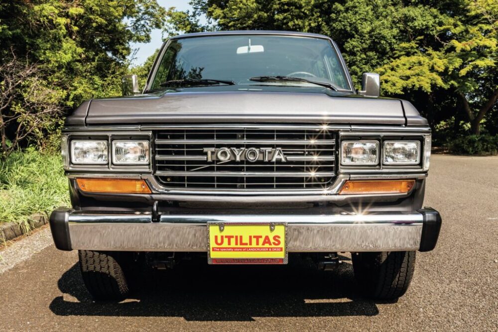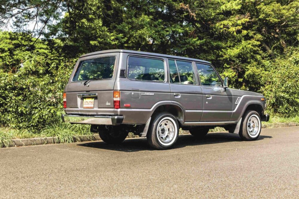 デビューは’80年なので、すでに40年以上が経過しているが、堅牢な構造ゆえに今でも数多くの個体が現存している。ここに紹介するのは、そんな60系ランドクルーザーの’88年式の北米仕様、つまり左ハンドルという個体だ。これまで数多くのランドクルーザーを取り扱ってきた東京のユーティリタスによって輸入され、ボディや足回りはもちろん、エンジンルームもネジ一本に至るまでピカピカにレストアされ、まるで新車にように美しい一台だ。北米仕様の逆輸入車はロールーフでオーバーフェンダーなし、かつガソリンエンジンということでシンプルでクラシカルな見た目が魅力だ。