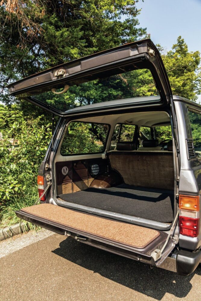 リアゲートは上下二分割で開く。ラゲッジルームは現代のクルマよりむしろ広く、セカンドシートを倒せば、更なるスペースを確保可能。