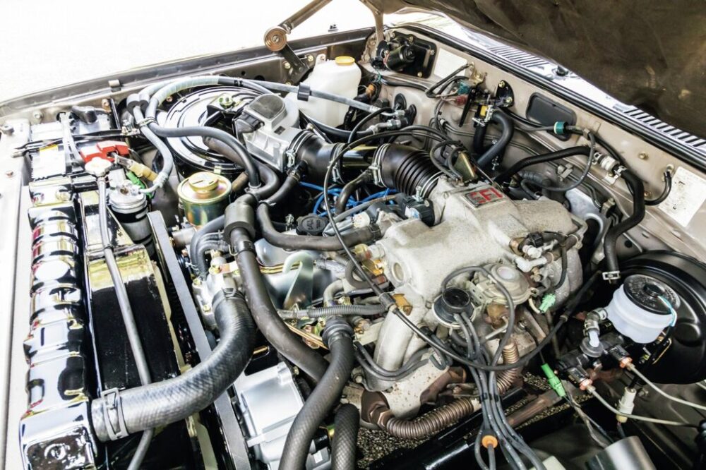 エンジンはガソリンの4リッター直列6気筒。可能なパーツは交換し、細かなパーツは再メッキし、まるで新車のようなエンジンルームとなっている。