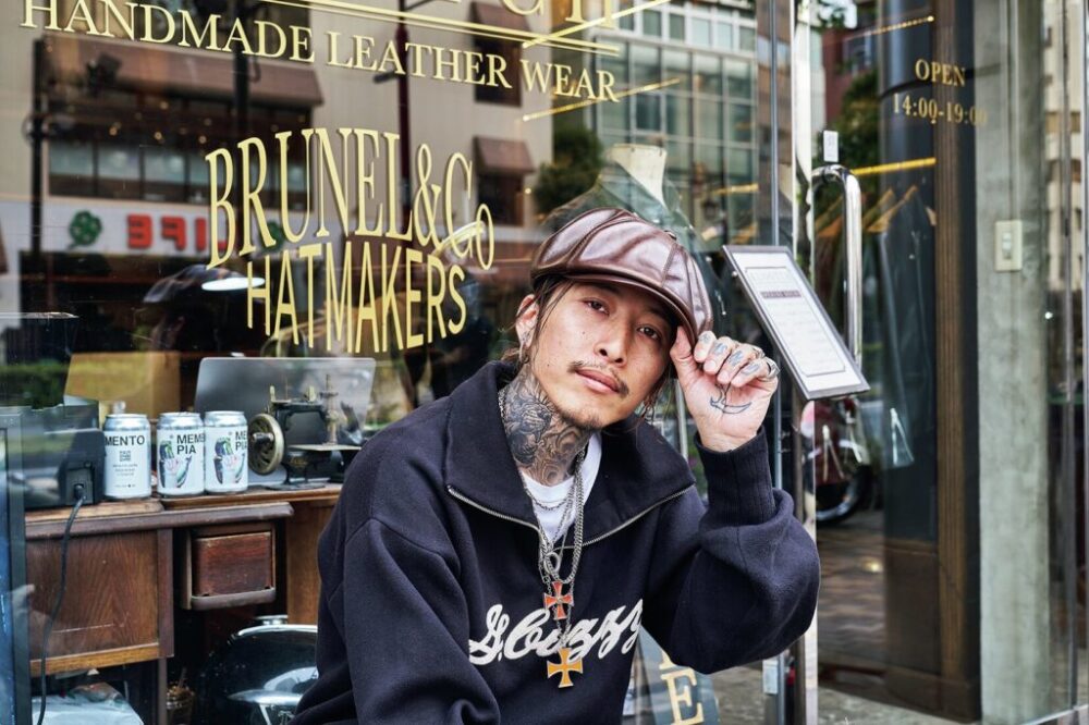 ブーツや革ジャンと同じように、帽子にもこだわって欲しいという思いから、モヒカン小川が革から別注。素材を手掛けたのは新喜皮革だ。しっとりと、それでいてハリのある1.3㎜厚のベジタブルタンニンのホースハイドという思い入れたっぷりのレザーと共に、BRUNEL&Co. HATMAKERSに制作依頼。3万3000円