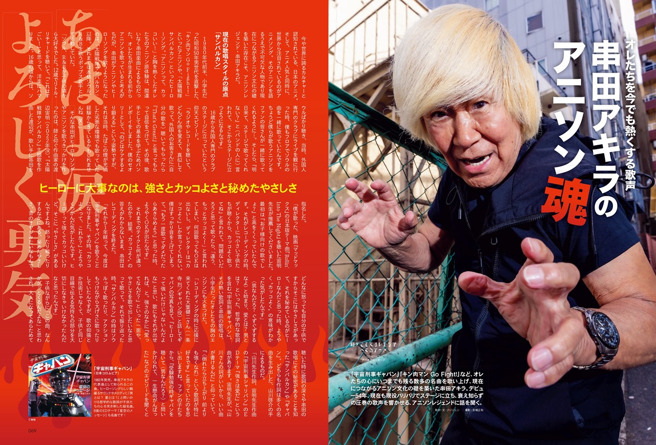 「男なんだろ? ぐずぐずするなよ」「生命あったら 語ろう真実」…昭和50年男にはお馴染みのアニメ・ヒーローソングの一節。これらの楽曲の歌い手は、串田アキラだ。 アニソンのキモは“カッコよく” 今年で歌手生活60年の串田が最初に子供向け番組の主題歌、いわゆるアニソンを担当したのは1981年の『太陽...続きを読む