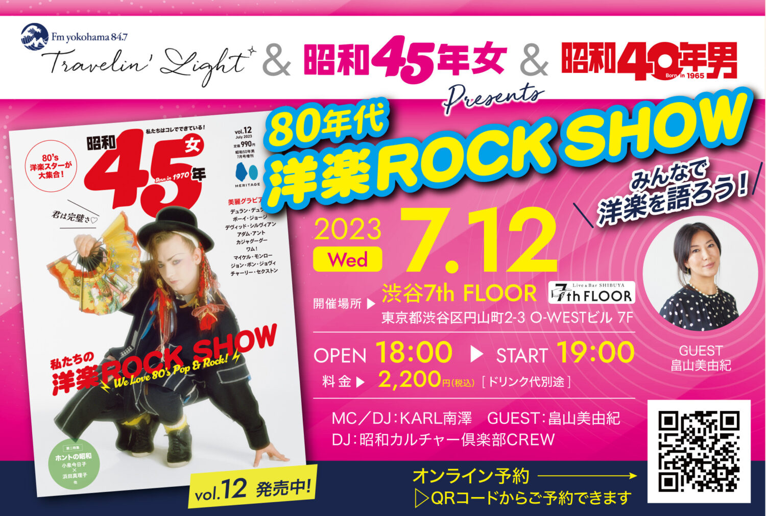 “私たちはコレでできている!”をキーワードに、不定期発行でお届けしている『昭和45年女』。雑誌名の通り、昭和45年生まれの女性をメインターゲットとし、この世代の女性たちを“つくってきた”カルチャーをあらゆる角度から深掘りしているカルチャー誌です。 80年代洋楽好き、集合〜7月12日、トークイベント...続きを読む