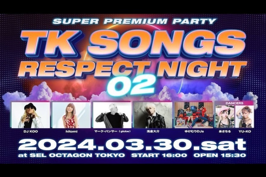 TK SONGSに愛と感謝とRESPECTを掲げたDJ・アーティスト・ダンサーたちが共演する神イベントが再び! TK SONGSを大音量で浴びるスーパープレミアムな空間 2024年3月30日、「SUPER PREMIUM PARTY TK SONGS RESPECT NIGHT 02」が開催され...続きを読む