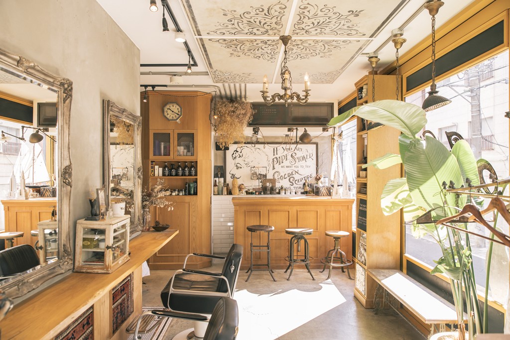 ノスタルジックな雰囲気の商店街にある、1920年代のアメリカ禁酒法時代の隠れ酒場をコンセプトにしているヘアサロン「Speakeasy Saloon Beautysmith」。オーナーの長尾 圭氏はヘアスタイリストのみならずタイルアーティストとしても活動するだけに、ビンテージのインダストリアルファニチ...続きを読む