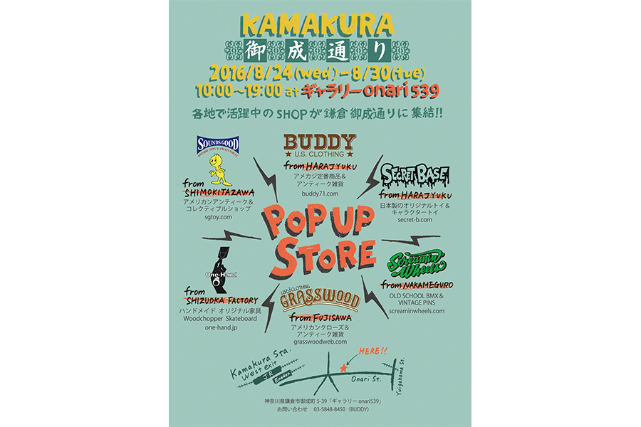 「2nd」でも馴染み深いアメリカをテーマにしたショップによるポップアップストアが8月24日(水)~8月30日(火)まで開催される。服、古着、オモチャ、BMX、雑貨などそれぞれのショップの個性溢れる品揃えが一堂に会する。このイベントのためにプライスダウンされたアイテムもあるということで、鎌倉散策に...続きを読む