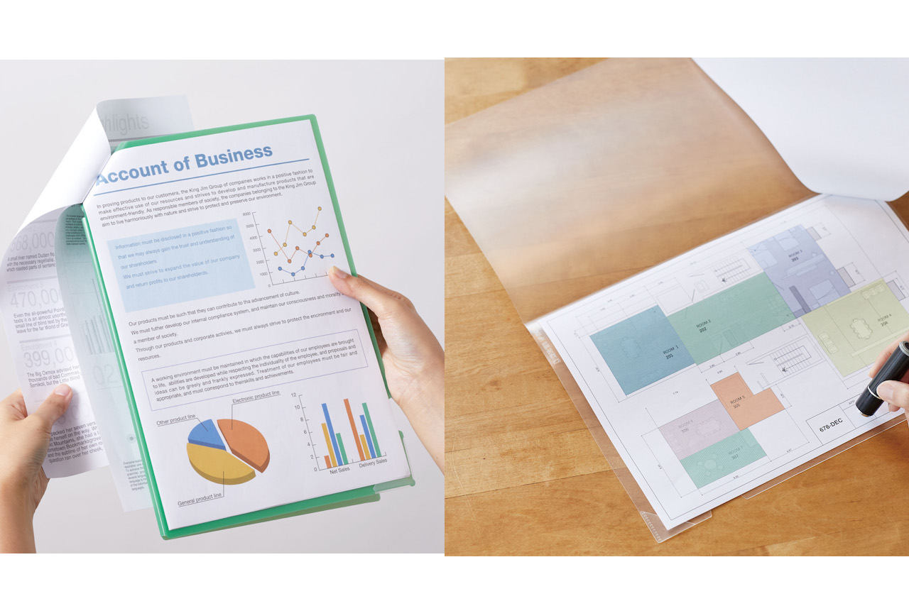 書類をホチキス留めされた資料のようにナナメにめくれる書類収納用品「ナナメクリファイル」「ナナメクリホルダー」を2月4日(金)に発売開始。 現在様々な種類のファイルやホルダーが販売されているが、ファイルはポケットごとに書類を入れる必要があったり、ホルダーは書類を出さないと2枚目以降が閲覧でき...続きを読む