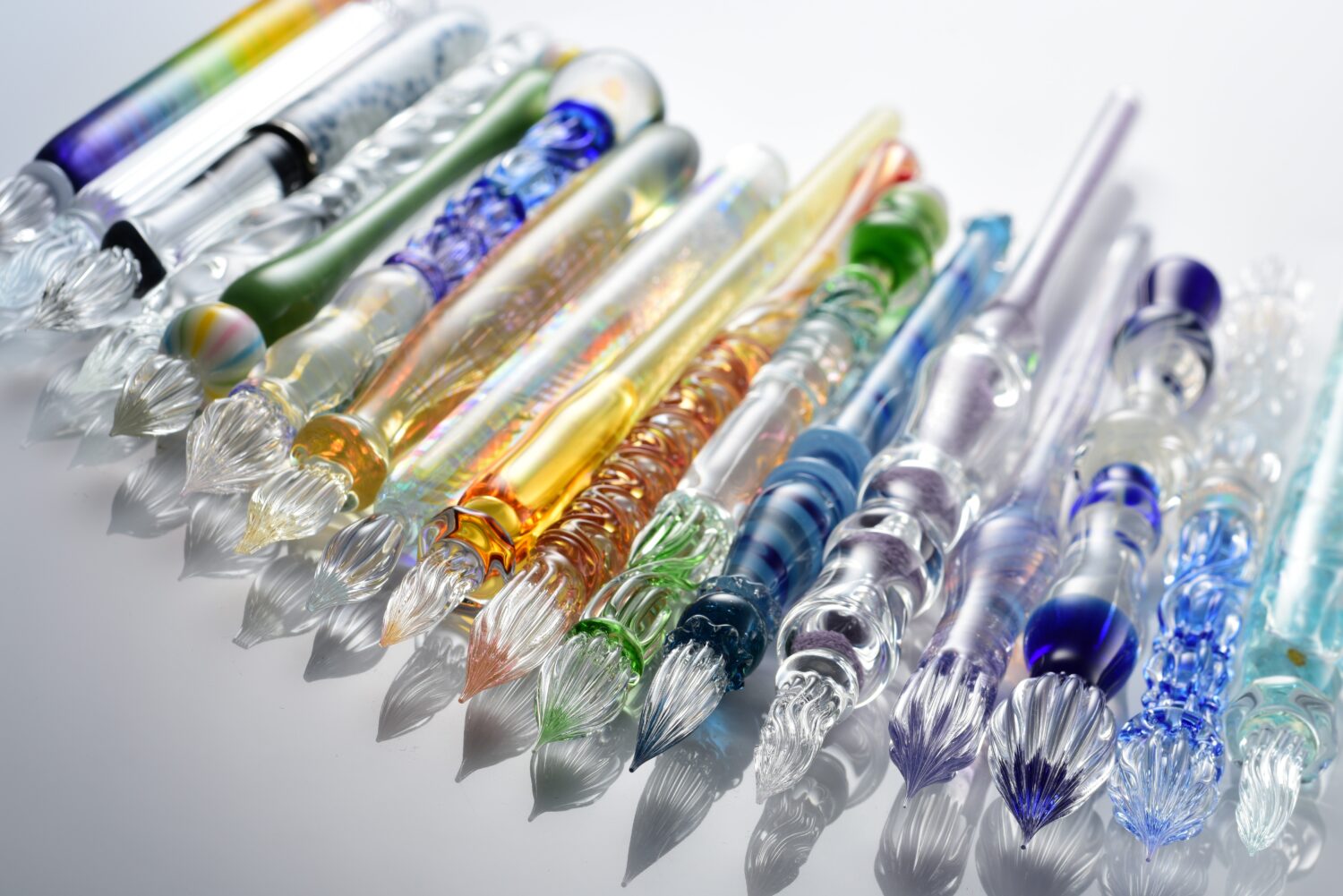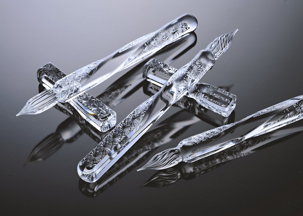 万年筆インクの盛り上がりに並行して人気を集めているのが、透明感とファンタジックなデザインが魅力のガラスペンだ。ガラスは、古くは瑠璃、玻璃、ビードロ、ギヤマンなどと呼ばれ、憧れと親しみを感じさせる素材。これを筆記具に応用したガラスペンは、明治35(1902)年、日本の風鈴職人・佐々木定次郎が考案したと...続きを読む