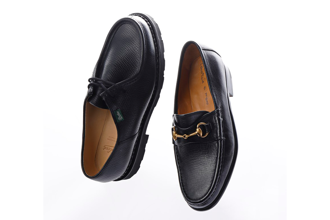 ビームス フェニカとレンドがレザーにも泥染めというユニークな3タイプのシューズを新提案。鞣し、染色、製作までが国内熟練工によって紡ぎ出される純国産グッドイヤー靴の経緯を、仕掛け人である「ビームス フェニカ」バイヤー・渡辺翼さんと「レンド」デザイナー・吉見鉄平さんのおふたりに伺う。 ...続きを読む
