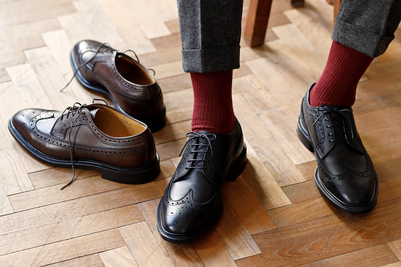 帝政ローマ時代にトナカイの原皮を非常に複雑な製法で鞣したとされる、通称ロシアンカーフ。他とはひと味違う、特徴的な菱形状のシボ目を再現したレザーがいま靴業界で流行の兆しをみせている。 特に人気ブランドがこぞって指名するのが、このふたつ。ご存じ米シカゴ発のホ—ウィン社による「ハッチグレイン」と、フラン...続きを読む