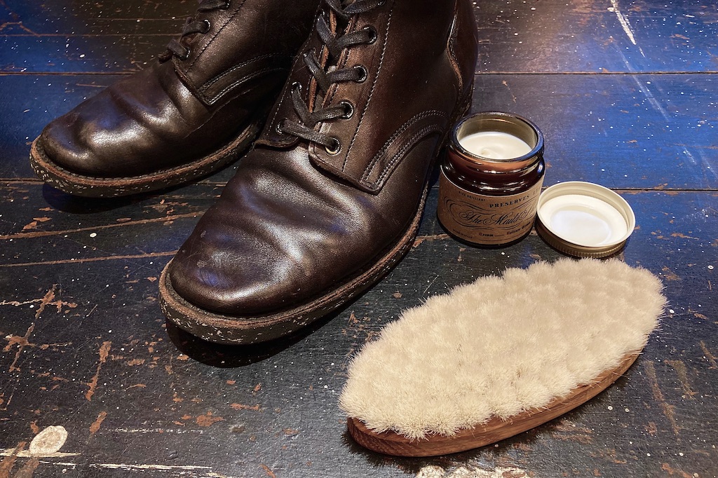 ブーツや革靴愛好家にとって、プロダクツ同様に気になるのがシューケアグッズ。レザーという素材の特性上、何もケアしないと経年変化ではなく劣化になってしまう。 もちろん、神経質になる必要はないけれど、汚れたとき、雨の日の後、レザー表面が乾燥気味だと感じたときはシューケアを気にしてあげることがお気に入...続きを読む