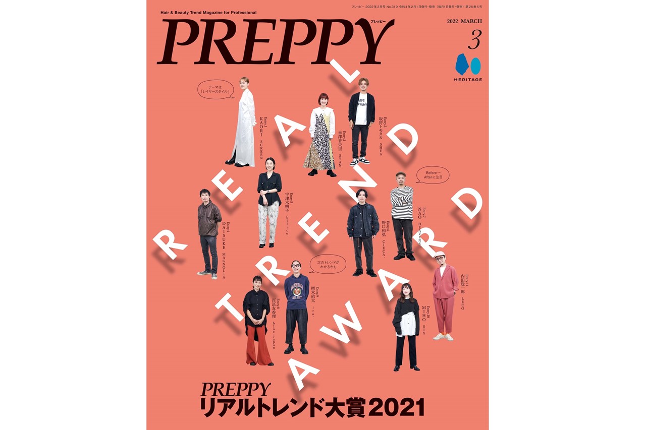美容業界誌「プレッピー」最新号が本日発売! 美容のプロフェッショナルに向けた、最新の売れるスタイルやテクニック、業界情報をお届け! 購入はこちらから! 表紙と第1特集「PREPPYリアルトレンド大賞2021」にはノミネーター美容師11名が登場し、「レイヤースタイル」をテーマに作品を発表。 ...続きを読む