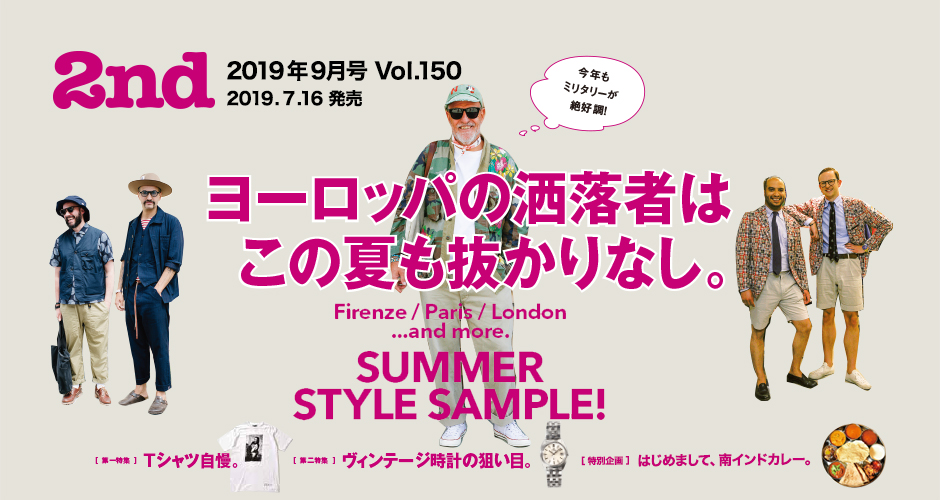 ヨーロッパの洒落者はこの夏も抜かりなし。「2nd(セカンド)」Vol.150 2019年9月号 7月16日発売!