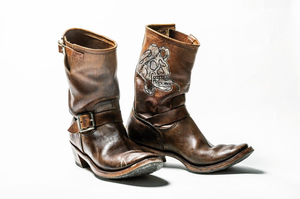 穿く人のクセやブーツそのものの革によってさまざまな表情を見せる茶芯のブーツ。デニムと同じように個体差が表現されやすいのが大きな魅力。特に黒ベースのブーツであれば、ヴィンテージのブーツのように茶芯がわかりやすく現れるので初めての人でもエイジングが想像しやすく気兼ねなく履けるためオススメだ。数多くのブー...続きを読む