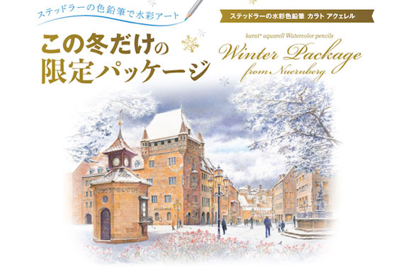 水彩色鉛筆で人気の「カラト アクェレル」から、冬季限定ウインターパッケージが11月から発売される。今年のウインターパッケージは、テレビ番組でも活躍中の水彩画家・野村重存氏がドイツ・ニュルンベルクの冬の街並みを書き下ろしたもの。 冬らしいスペシャルなパッケージは12色から60色セットまでの全5種類の...続きを読む