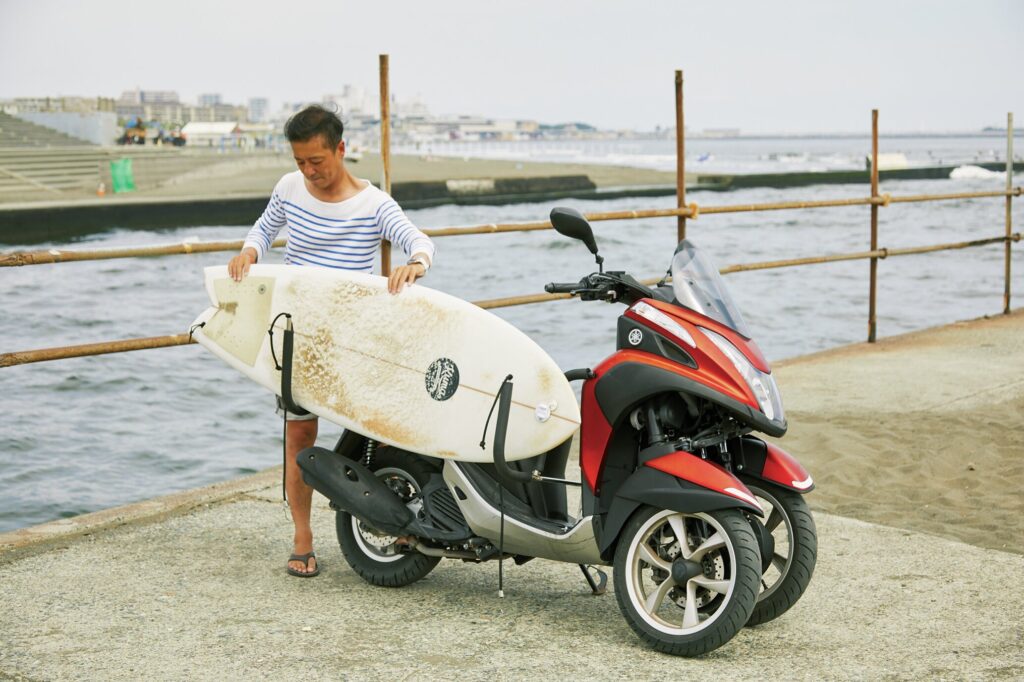 波のある生活。海の近くに住み、いつでもサーフボードを持って海岸に行く。そんなサーファー憧れの生活をしているのが、映像制作会社の代表でもある明本英男さん。サーフボードマウントを快速スクーターのトリシティ125に装着してからサーフライフは明本さんにとってさらに身近なものへと変わっていった。 ボードを積...続きを読む