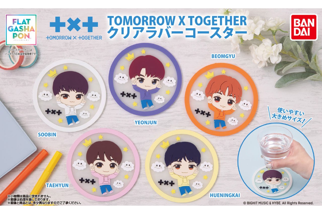 バンダイ ベンダー事業部は、グローバルに活躍する韓国5人組ボーイグループ『TOMORROW X TOGETHER』のメンバーイラストを使用したクリアラバーコースター「【フラットガシャポン】TOMORROW X TOGETHER クリアラバーコースター」(1回400円・税10%込、全5種)を2024...続きを読む