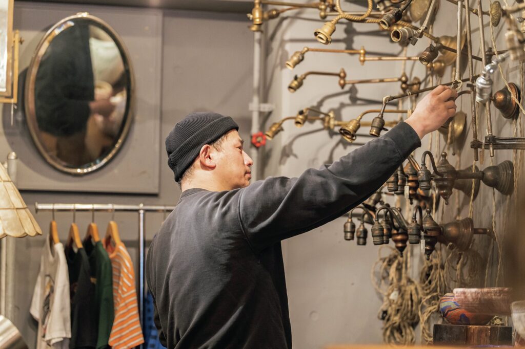 空間づくりのプロたちもこぞって通う青山の名店であるフックドヴィンテージ。オーナーを務める安藤夫妻は、夫の公祐さんが家具、妻の小葉さんが洋服を担当する。安藤さんがこの道を進むきっかけとなったのが、東海岸で出会った旧きよき時代の家具だった。 インダストリアル家具は未知の世界だった。 青山にある人気店...続きを読む